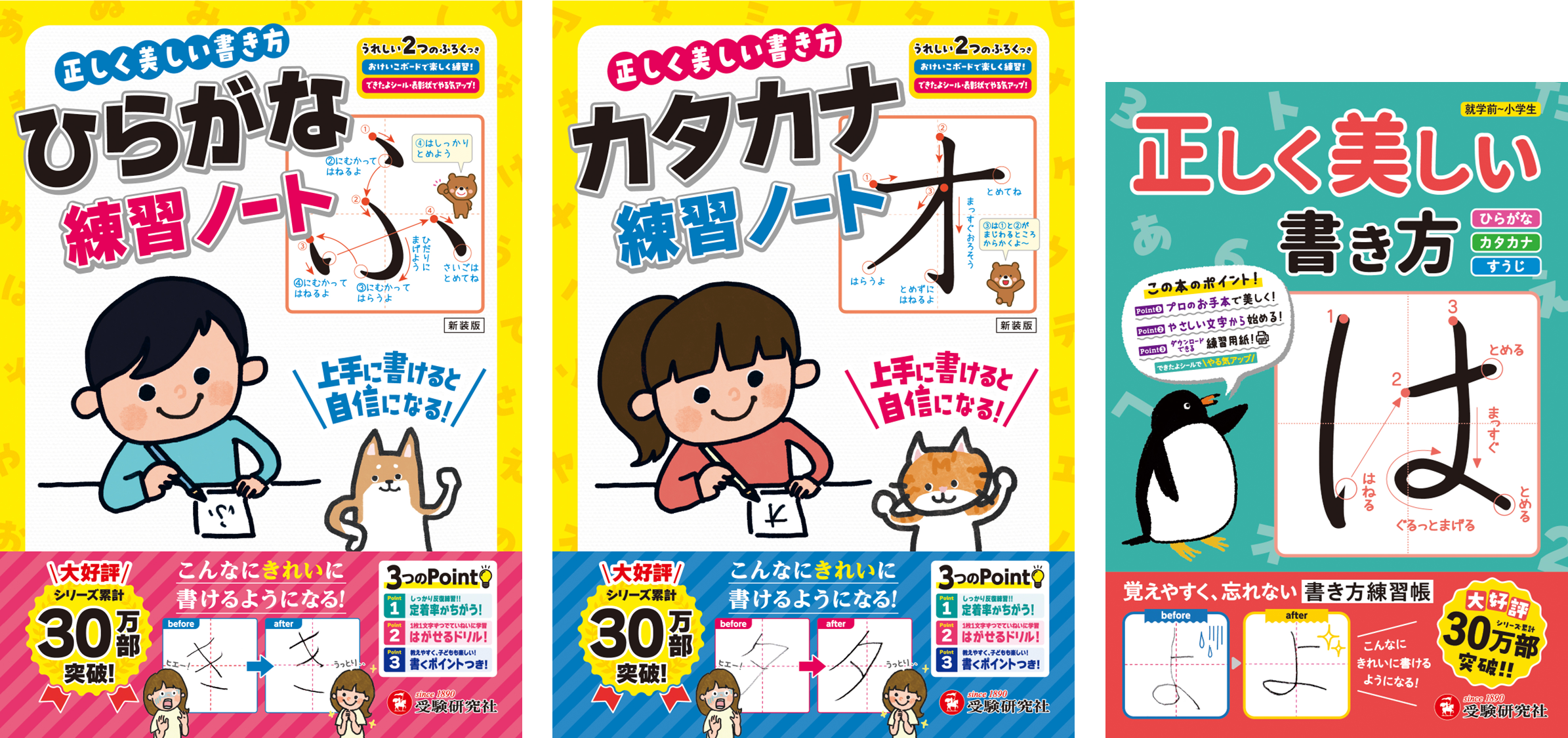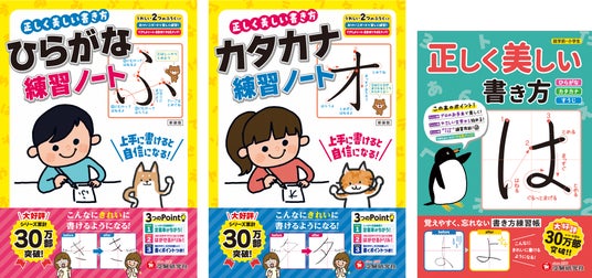 株式会社増進堂・受験研究社(本社:大阪市西区、代表取締役:岡本泰治)は、就学前~小1児童におすすめのひらがな、カタカナ、数字がきれいに書けるようになる練習帳『正しく美しい書き方 ひらがな練習ノート』、『正しく美しい書き方 カタカナ練習ノート』、『正しく美しい書き方 ひらがな・カタカナ・すうじ』を2026年3月16日より発売いたします。