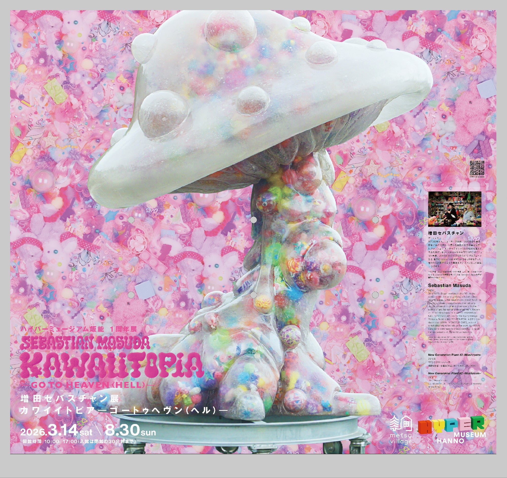 株式会社メッツァ(代表取締役社長:望月潔)が運営する北欧ライフスタイル体験施設「メッツァビレッジ」(埼玉県飯能市)内の現代美術館「HYPER MUSEUM HANNO」(ハイパーミュージアム飯能、館長:後藤繁雄)の開館1周年記念展 増田セバスチャン「KAWAIITOPIA -GO TO HEAVEN(HELL)-」(カワイイトピア ゴー トゥ ヘヴン(ヘル))が2026年3月14日(土)から開幕します。記念展にあわせて、5月16日(土)に西武鉄道株式会社(本社:埼玉県所沢市、社長:小川周一郎)と連携した1日限りの特急ラビュー「KAWAII トレイン」の特別運行が決定しました。