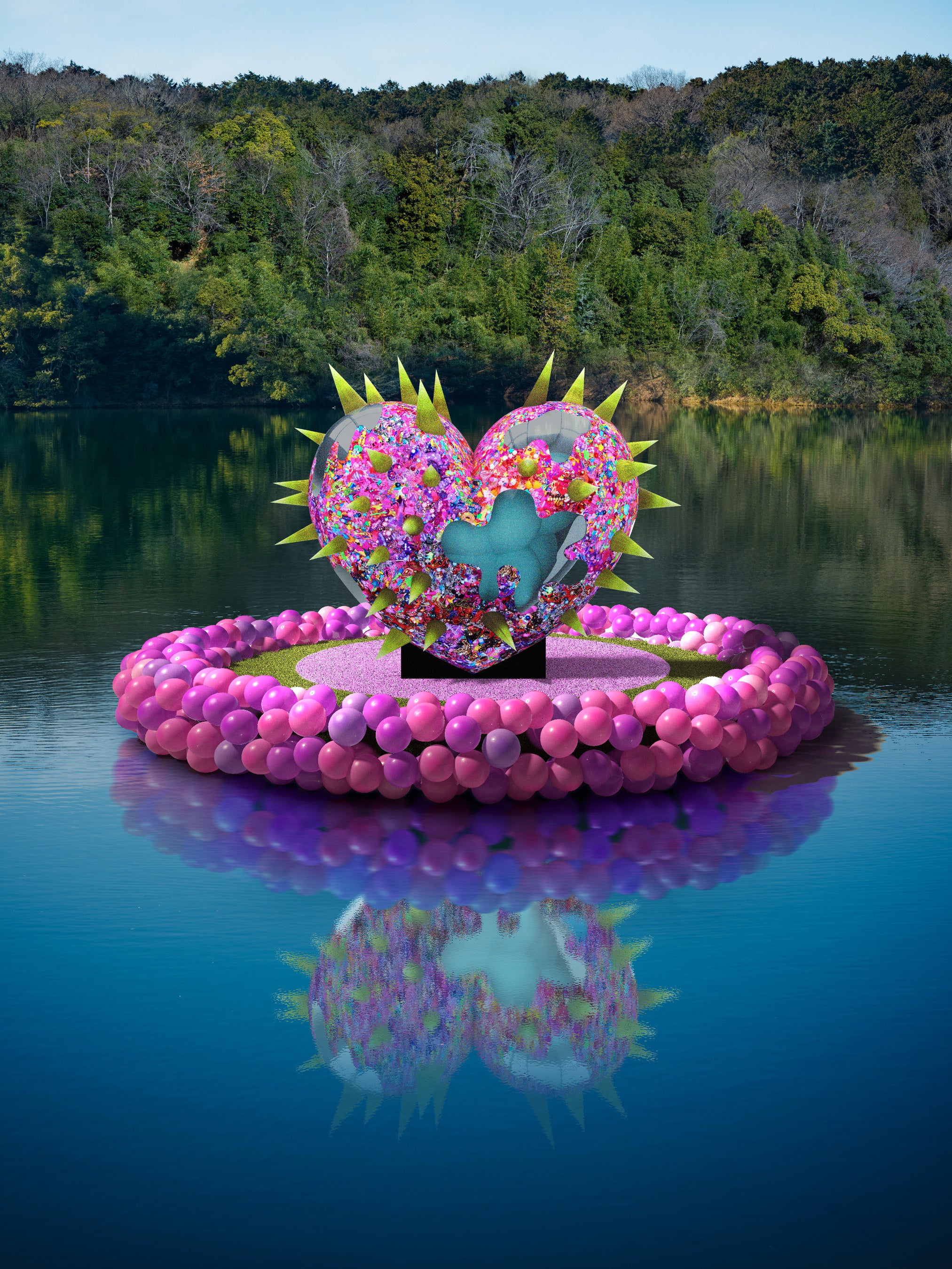 宮沢湖に浮かぶピンク色のKAWAIIの聖地「KAWAII-CORE ISLAND」や、入口に巨大タワー「PolyChromatic Skin - Gender Tower-」が登場し、館内では増田セバスチャンの原体験を辿る「7つのKAWAII地獄巡り」―葛藤の先でKAWAIIの核心に遭遇する没入体験のほか、KAWAIIグッズが揃う限定ポップアップショップや撮影ブースも併設した1周年記念展です。