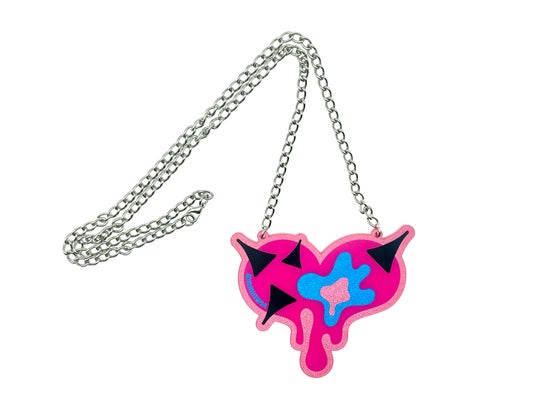 ダイカットデザインのハートモチーフが特徴的なグリッターネックレス。