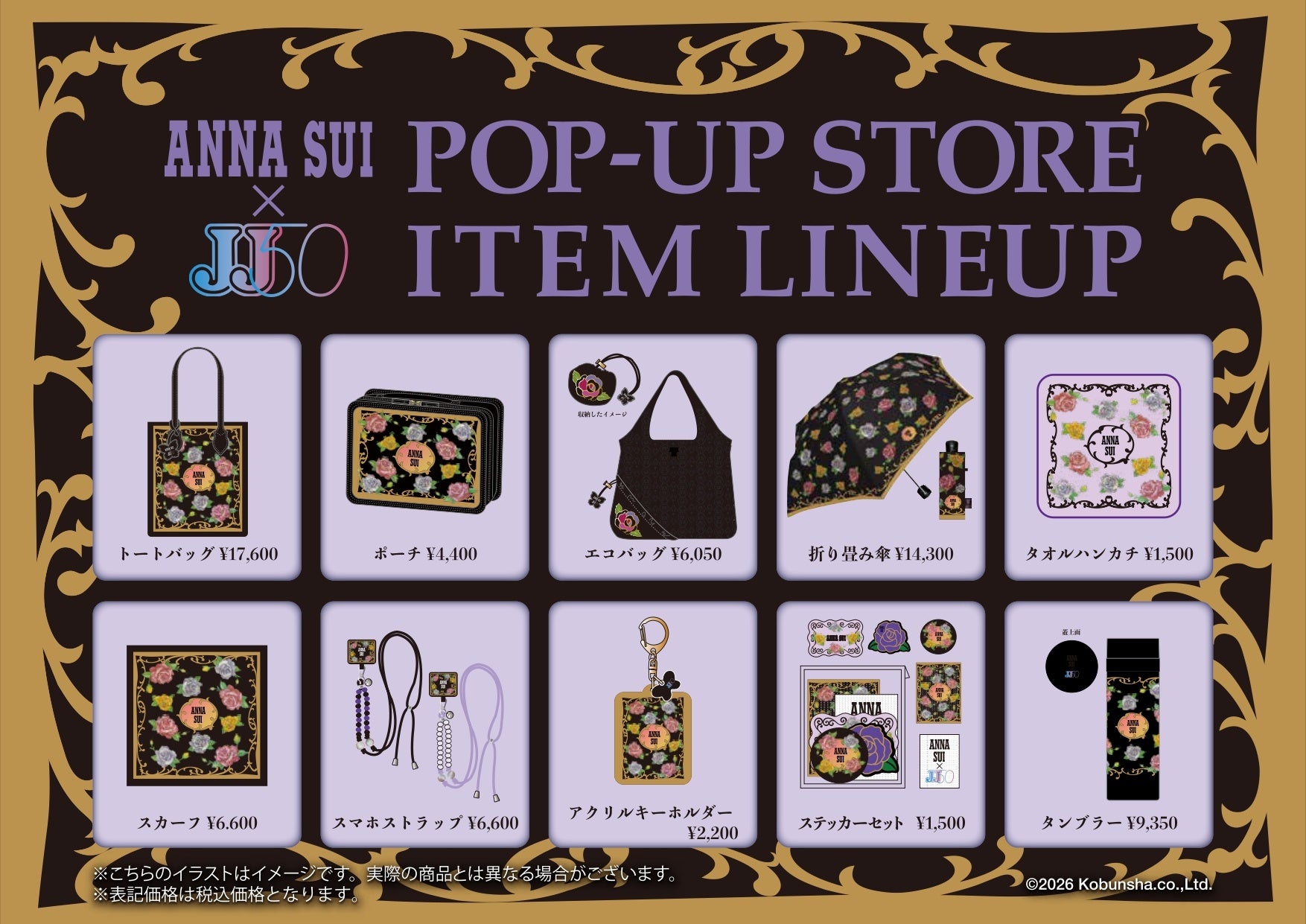 創刊50周年を迎えたファッションメディア「JJ」が「ANNA SUI(アナ スイ)」とのスペシャルコラボを実現!JJ創刊50周年を記念し仙台駅前EbeanS 3階イベントスペースにて2026年3月20日(金・祝)から3月29日(日)まで「JJ 50 × ANNA SUI POP-UP STORE」を開催いたします。公式ECでは一部商品が一時完売(※現在は再販売中)するほどの人気となった限定アイテムを入手できるチャンスをお見逃しなく!