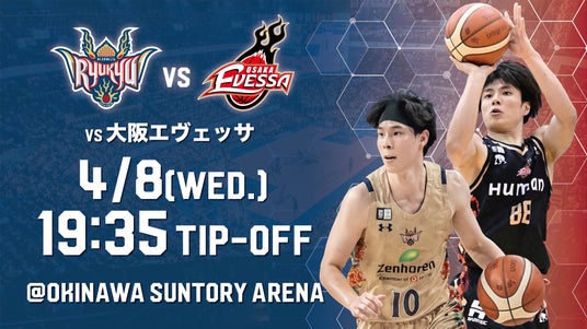 4月8日(水)、沖縄サントリーアリーナに大阪エヴェッサを迎えます。激化する終盤戦、一戦一戦の重みが増す中、チーム一丸となりこの戦いに挑みます。