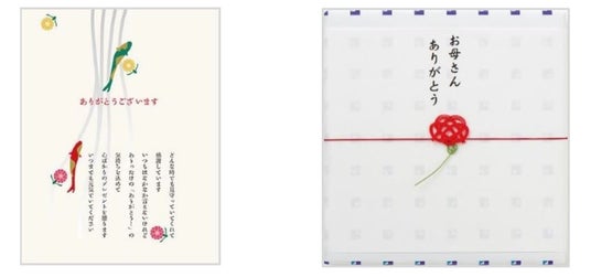 リンベル公式オンラインストアでは、オリジナルの母の日専用メッセージカードと、カーネーションを模したアート水引の無料サービスをご用意しています。