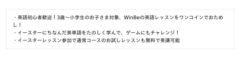 やる気スイッチグループの子ども向け英語・英会話スクールWinBe(R) (ウィンビー)https://www.winbe.jp/event/easter/
