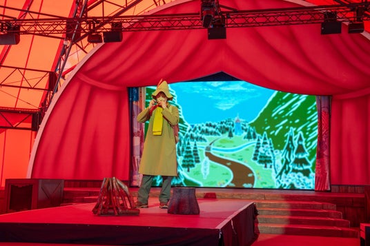 「エンマの劇場」は、大型テントを備えた待望の全天候型シアターとしてリニューアル。さらに新たな音響・照明・映像システムに加え、地元飯能市の「西川材」を使用したぬくもりあるベンチを完備した、一日を通してムーミン谷の仲間たちによるショーや、映像×音の演出が楽しめるムーミンバレーパークの新たなランドマークとなります。
