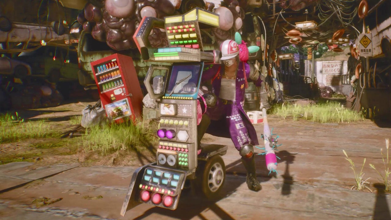 新武器の「デコトラ」は、攻撃ボタンをホールドし続けることで、最大3段階までパワーのチャージが可能。溜めれば溜めるほど、攻撃力も突進力も上昇します。デスブロウ(必殺技)では「デコトラ」に乗り込み地獄門を爆走!群がるエネミーを蹴散らす、最高にクールでイカれた性能が体感できます。