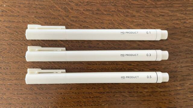 現在MDドローイングペンは、0.1mm、0.3mm、0.5mmの3種類の線幅があります。
