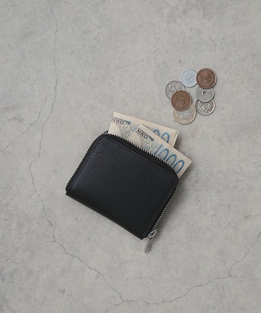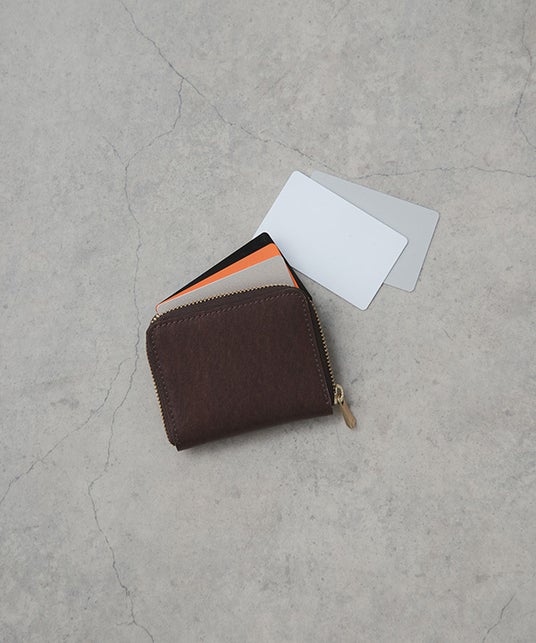 廃棄衣料を再資源化したリサイクルファブリックを使用しレザーライクで上質なシボ感が魅力。日々の暮らしに馴染み、さまざまな方のライフスタイルに寄り添う、そんなミニウォレットです。