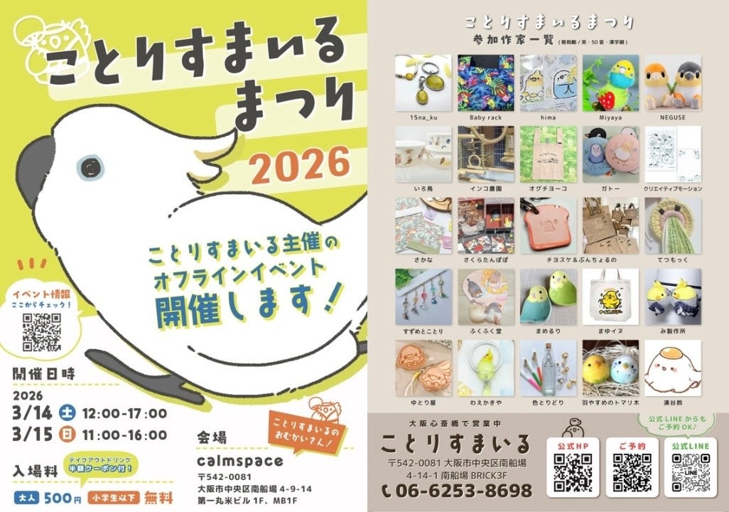 ★★★★★★鳥さんモチーフのグッズ販売会『ことりすまいるまつり』 開催★★★★★★