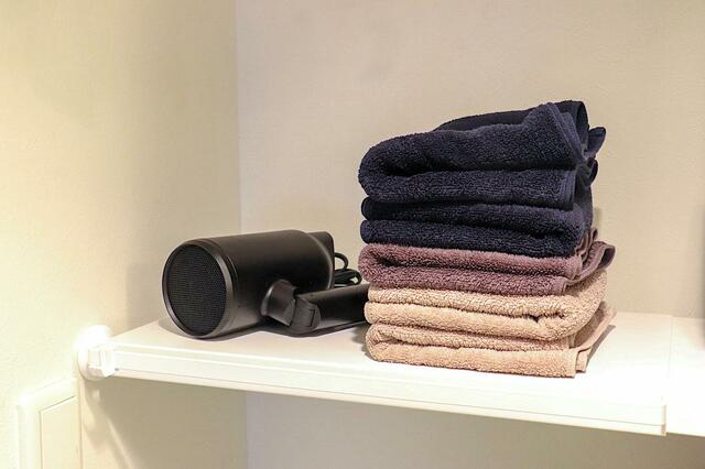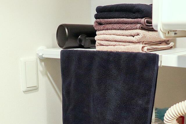 バーを活用することで、すぐに使いたいタオルなどを下げておくこともできます。