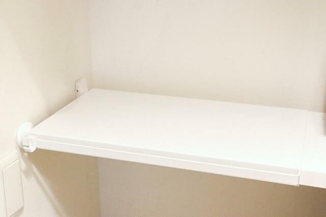 あとは、つっぱり棒を手前と奥に1本ずつ固定し、その上に棚をのせるだけ。
