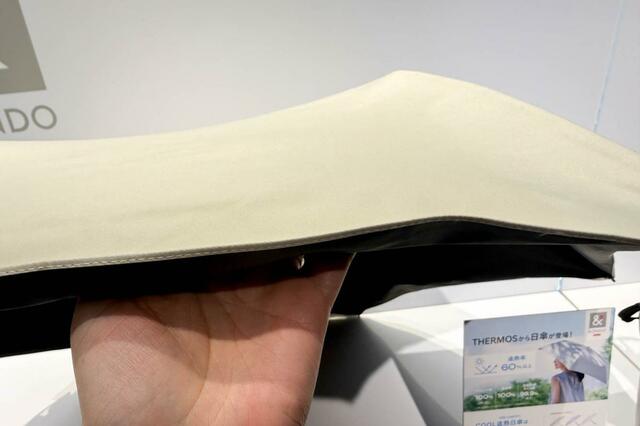 ちなみにハットとキャップどちらも遮熱率45%以上、遮光率100%、UVカット率100%(UPF50+)、近赤外線カット率99.9%以上。遮熱性の高いコーティングに加え、遮光・UVカット・近赤外線カットの機能を持つラミネートフィルムを重ねた2.5層構造の生地を使っているのだとか。