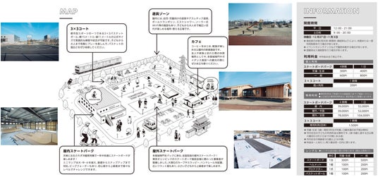 公園の全体像、開館時間、有料施設である屋内外スケートボードパーク、3x3コートの利用料金などは下記の通りです。