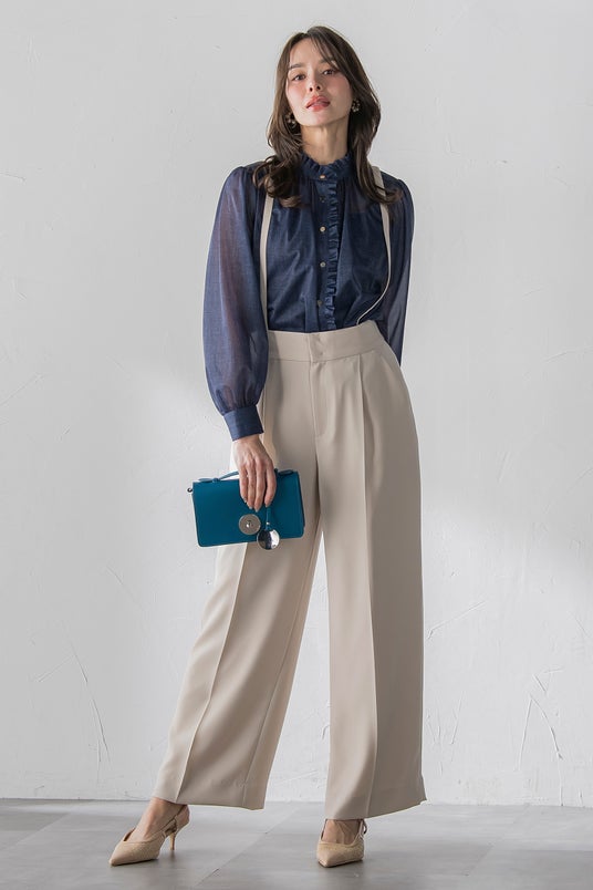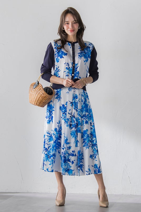 ビアッジョブルーは、 イタリア語で 「青い旅」 という意味を持ち、 1990 年 異国情緒が漂う港町 神戸で 旅をテーマに創立されました。 当初から一貫して海外のラグジュアリーブランドのような 高品質素材やデザインにこだわり、 特に京都のアトリエ画家と手がけるオリジナルのプリント生地は 絵画のように美しく、 毎シーズンご好評いただいております。 ビアッジョブルーの全てのパターンメイキングは熟練された専属のパタンナーが手掛けており ストレスのない着用感でありながら、 美しい姿勢へと導いてくれる 『美シルエット』 を追求しています。