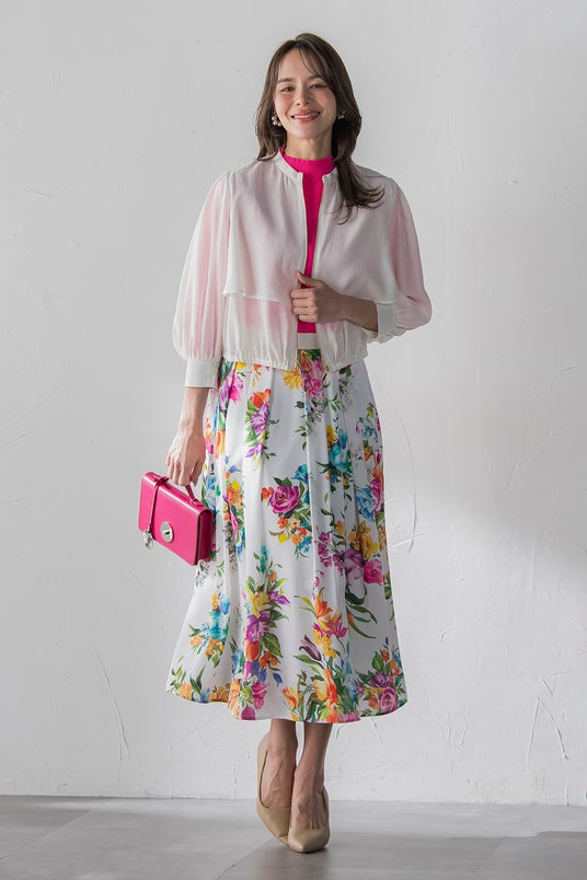 春の訪れを喜ぶように華やかに咲き誇る花々。シアーデニムなど新たな素材感で、繊細な中に今を感じるコレクションです。華やかな中に凛とした強さを感じる花たちをお楽しみください。