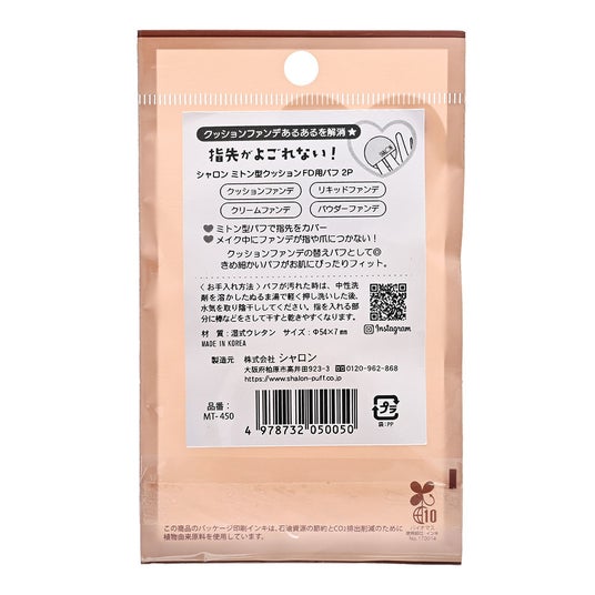 クッションファンデーションで指や爪が汚れたことありませんか?シャロンのパフで解決★シャロン ミトン型クッションFD用パフ 2P