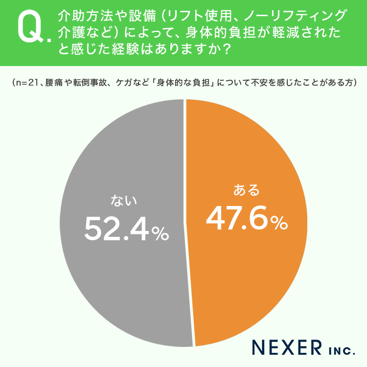 ■47.6%が、介助方法や設備によって「身体的負担が軽減された経験がある」と回答