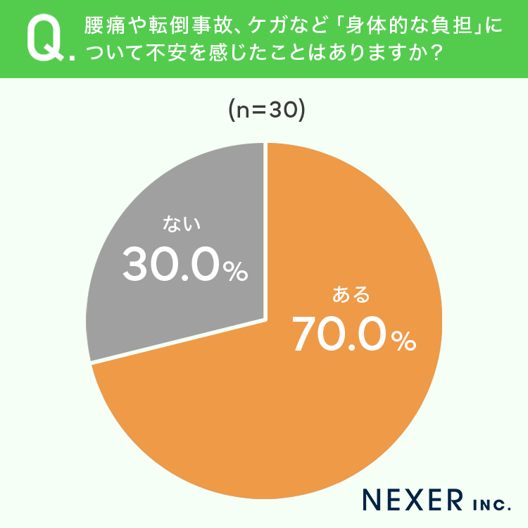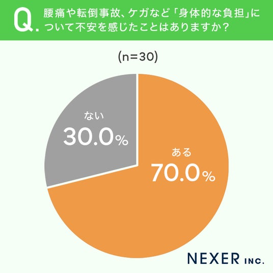 ■70.0%が「身体的な負担について不安を感じたことがある」と回答