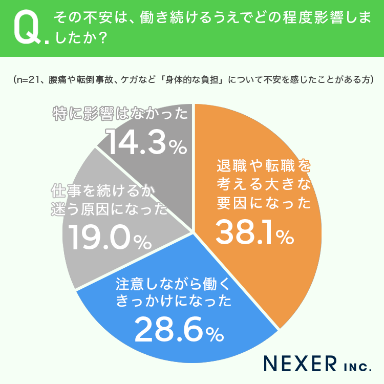 ■38.1%が、身体的な不安が「退職や転職を考える大きな要因になった」と回答