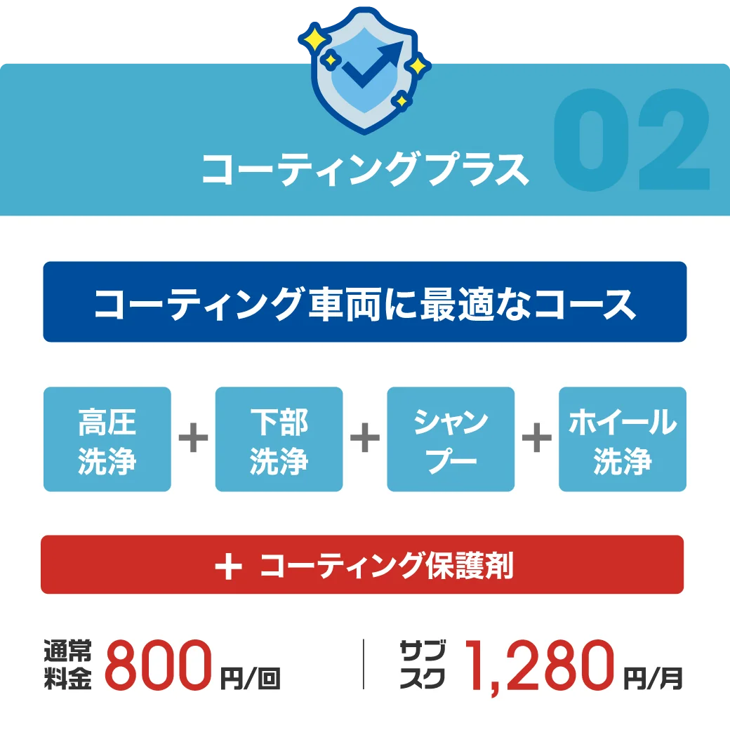 備考: 6月以降は通常料金(月額980円~)へ自動移行します。上位の「コーティングプラス」コースも39円でスタートできる絶好の機会です。