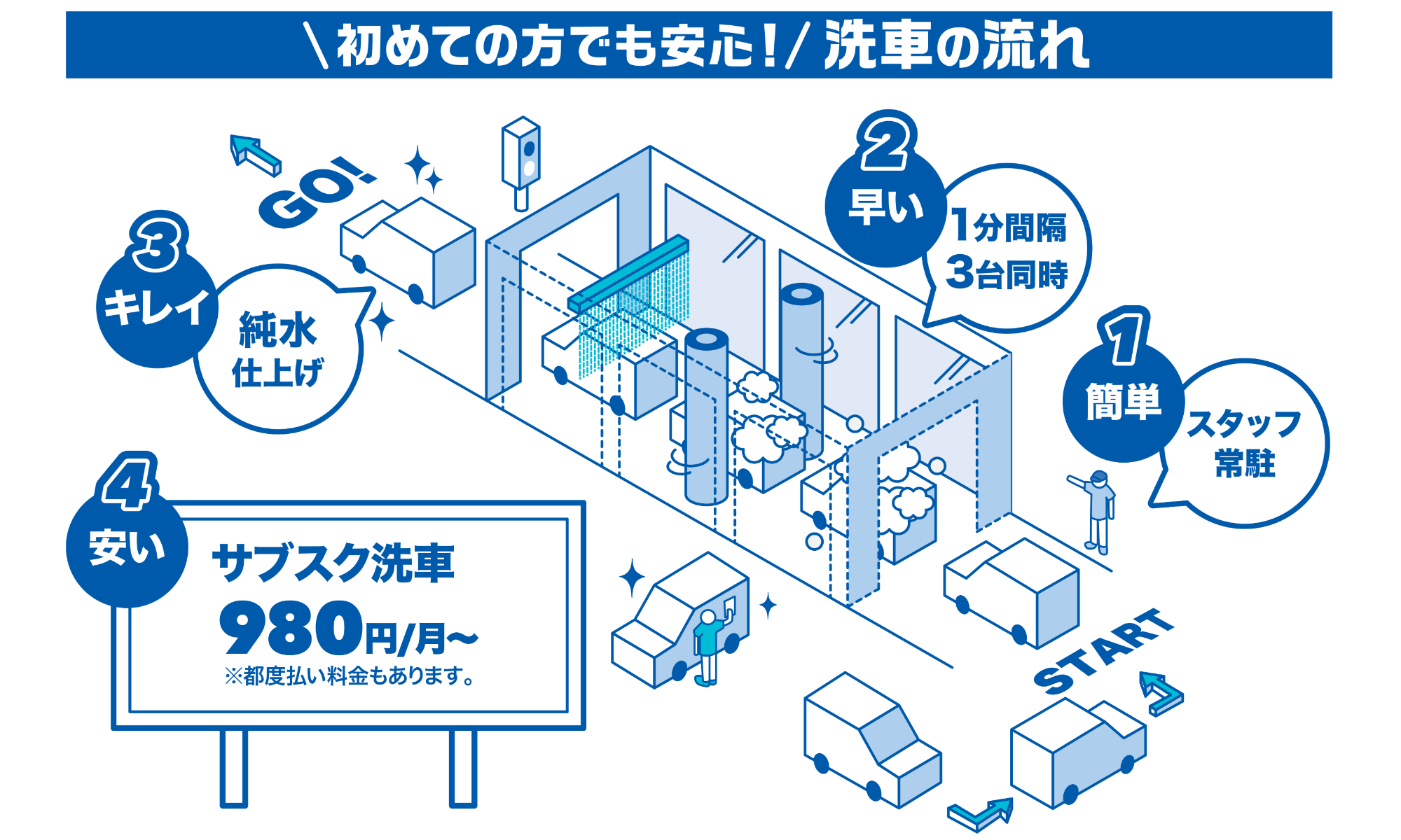 - 月額980円から何度でも--鹿児島初(※)の洗車サブスクリプション