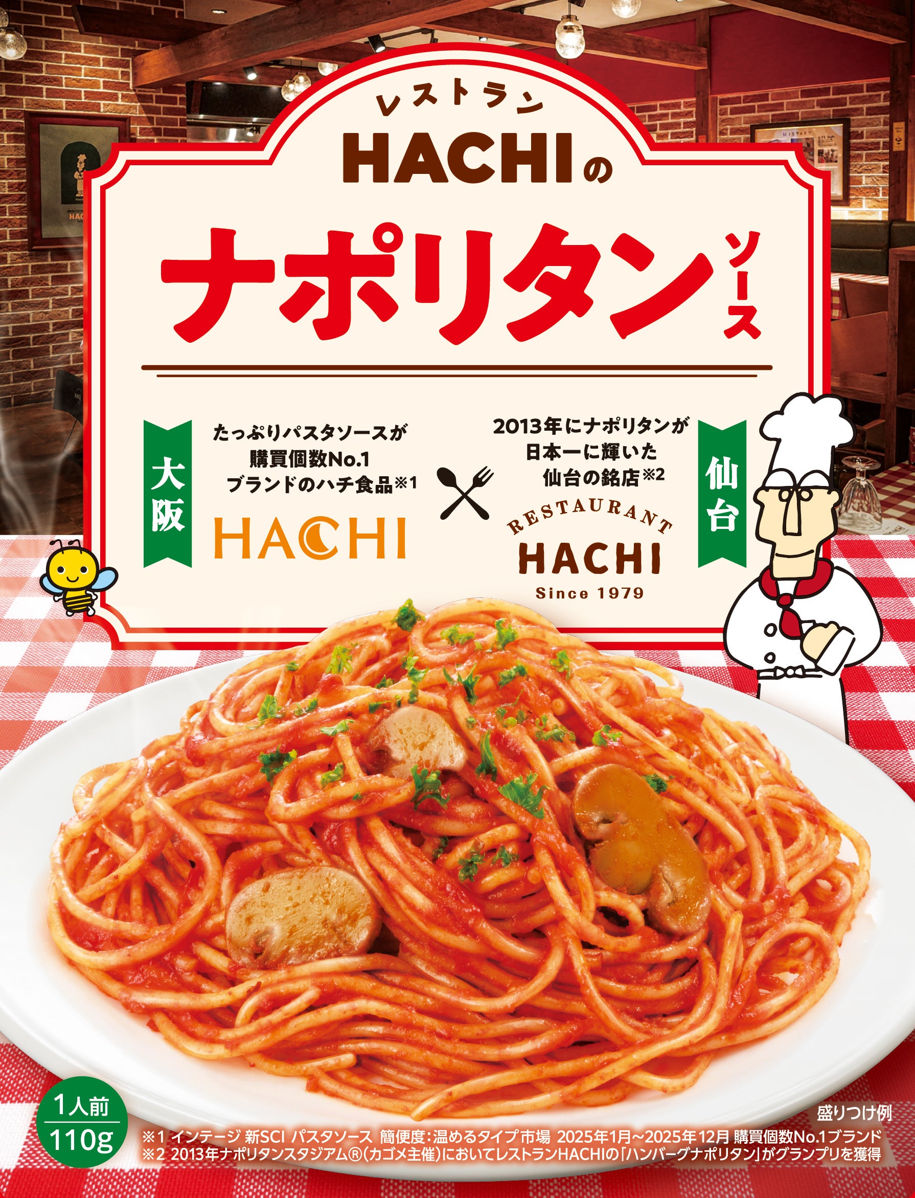 パスタソース市場において、「たっぷりパスタ」シリーズ※2で確かな実績を重ねてきたハチ食品が開発を手がけ、2013年にナポリタンが日本一に輝いた※1仙台の銘店レストランHACHIが味づくりを監修。No.1同士のコラボレーションとして、『レストランHACHIのナポリタンソース』は誕生しました。