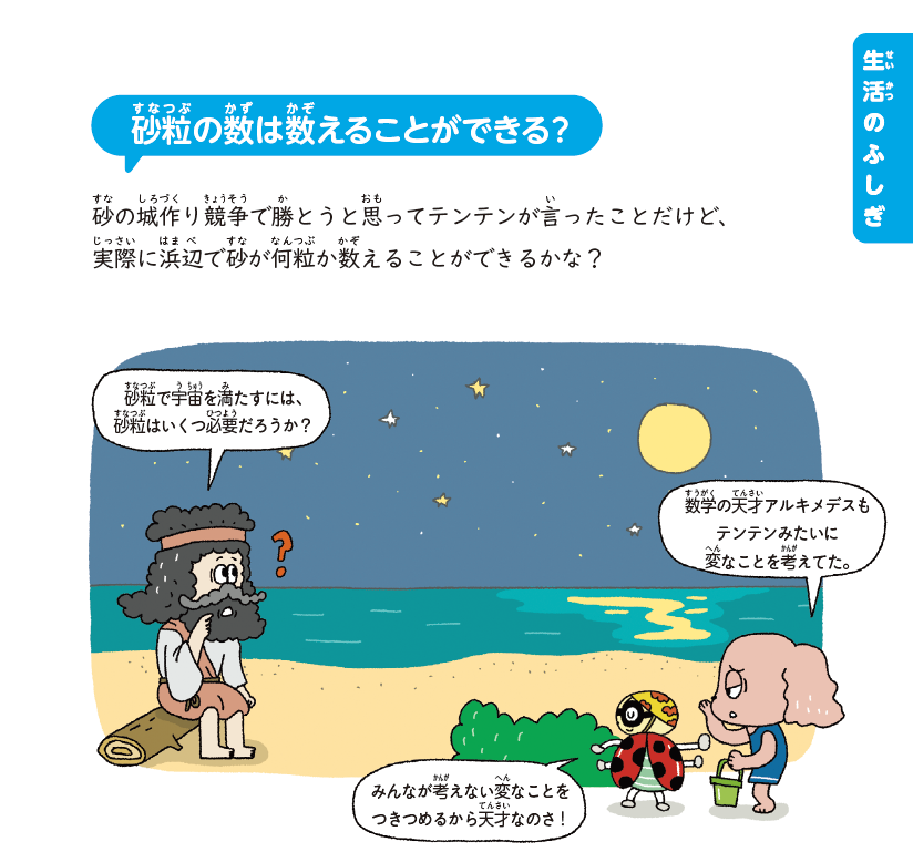 また、「ジュースの缶はどうして円柱形なのか?」など身近な物の形にも触れ、効率や機能に隠された算数のひみつをひも解きます。