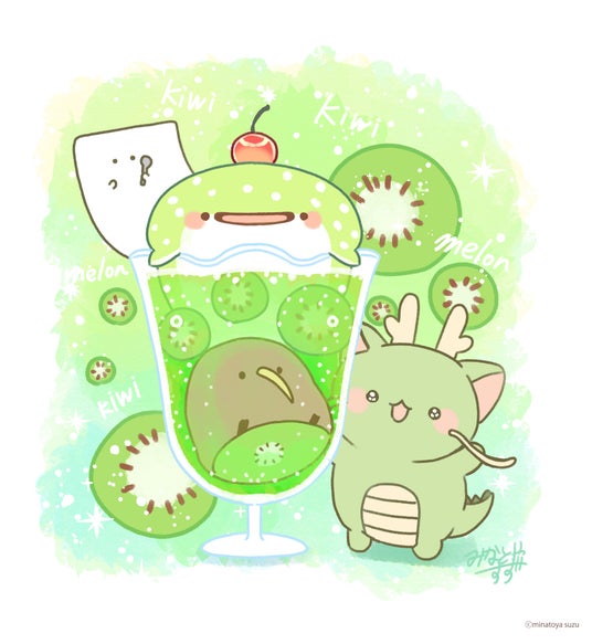 クリエイターの湊谷鈴(みなとやすず)が生み出す、ちょっぴり変わった特徴を持った生き物たちのキャラクターです。おしりを切られても座りやすいかも?と前向きに受け入れる「前向キウイ」や、なでなでされるのが大好きで、なでると幸福を呼んでくれる「なでりゅ~」など、個性豊かなキャラクターたちがいっぱい。なんか変?だけど癒される!とSNSで大人気♪
