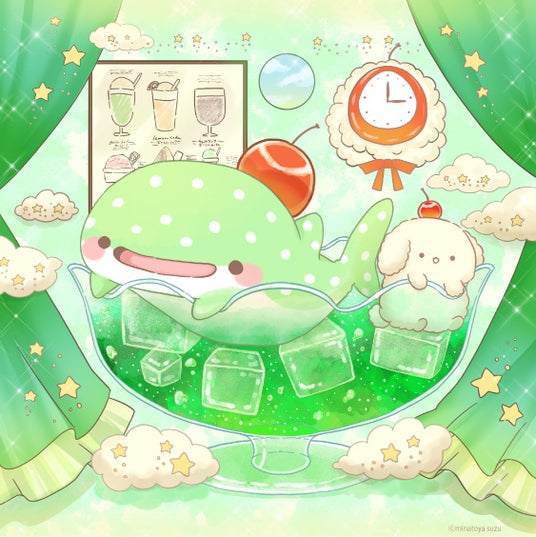 メロンソーダじんべえざめメロンソーダを飲んでメロンソーダ色になった。