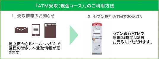 株式会社セブン銀行グループの株式会社セブン・ペイメントサービス(本社:東京都千代田区、代表取締役社長:柏熊 俊克)は、東京都足立区(区長:近藤 やよい、以下 足立区)へ「ATM受取(現金コース)」の提供を2026年3月2日(月)より開始しました。