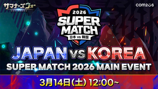 スマートフォン向けモバイルゲームをサービスしている株式会社Com2uS Japanは、iOS/Androidで大好評配信中の本格RPG『サマナーズウォー: Sky Arena』(以下、 サマナーズウォー)にて、3月14日(土)12時より日韓ライバル戦「JAPAN vs KOREA SUPER MATCH 2026」を大阪・近鉄アート館にて開催することをお知らせいたします。