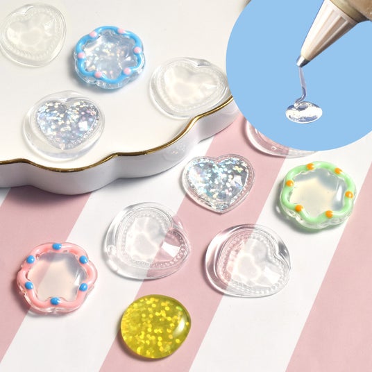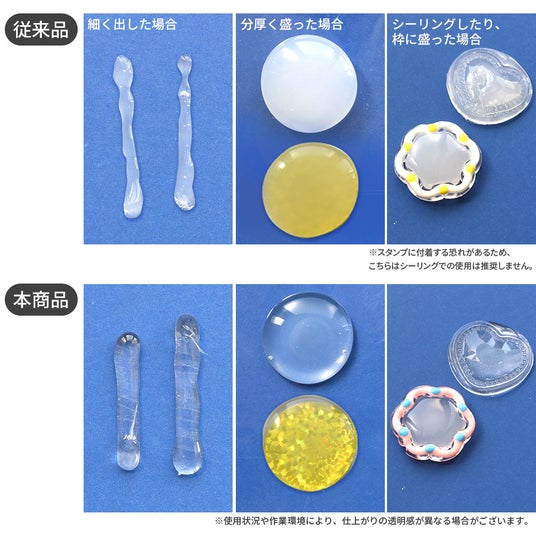 一般的に流通しているグルーは、固まると白く濁る性質があります。接着用途としては問題ありませんが、透明感を活かしたクラフト用途には不向きという課題がありました。