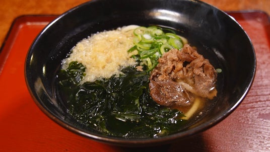 国道沿いに建つ、風格ある和風建築のうどん店「四國うどん」。広い店内にはコの字カウンターが3つ並び、カウンター席だけでおよそ50席! 長年通う常連客も多い人気店で、なかでも瀬戸内産いりこやサバ節、イワシ節で取った出汁に、鳴門産の肉厚わかめを合わせた「肉わかうどん」は創業当時から愛される名物メニュー。はたして「四國うどん」の創業年数は?