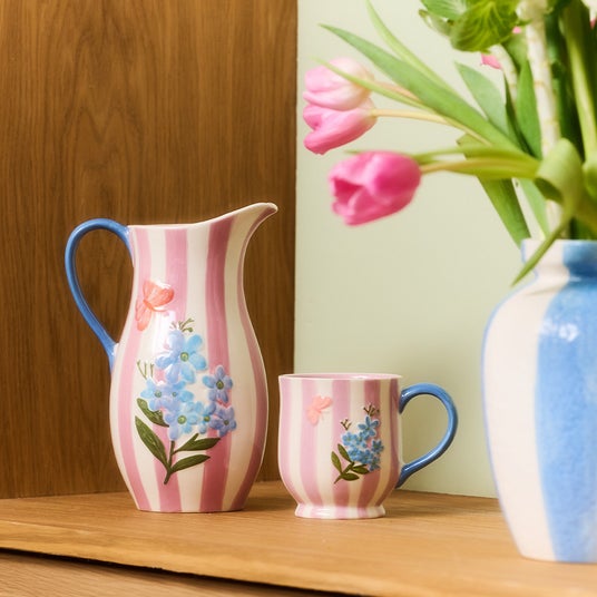 ピンクのストライプに、お花と蝶々をアクセントにしたシリーズ。セットで揃えると、より雰囲気が出ます。