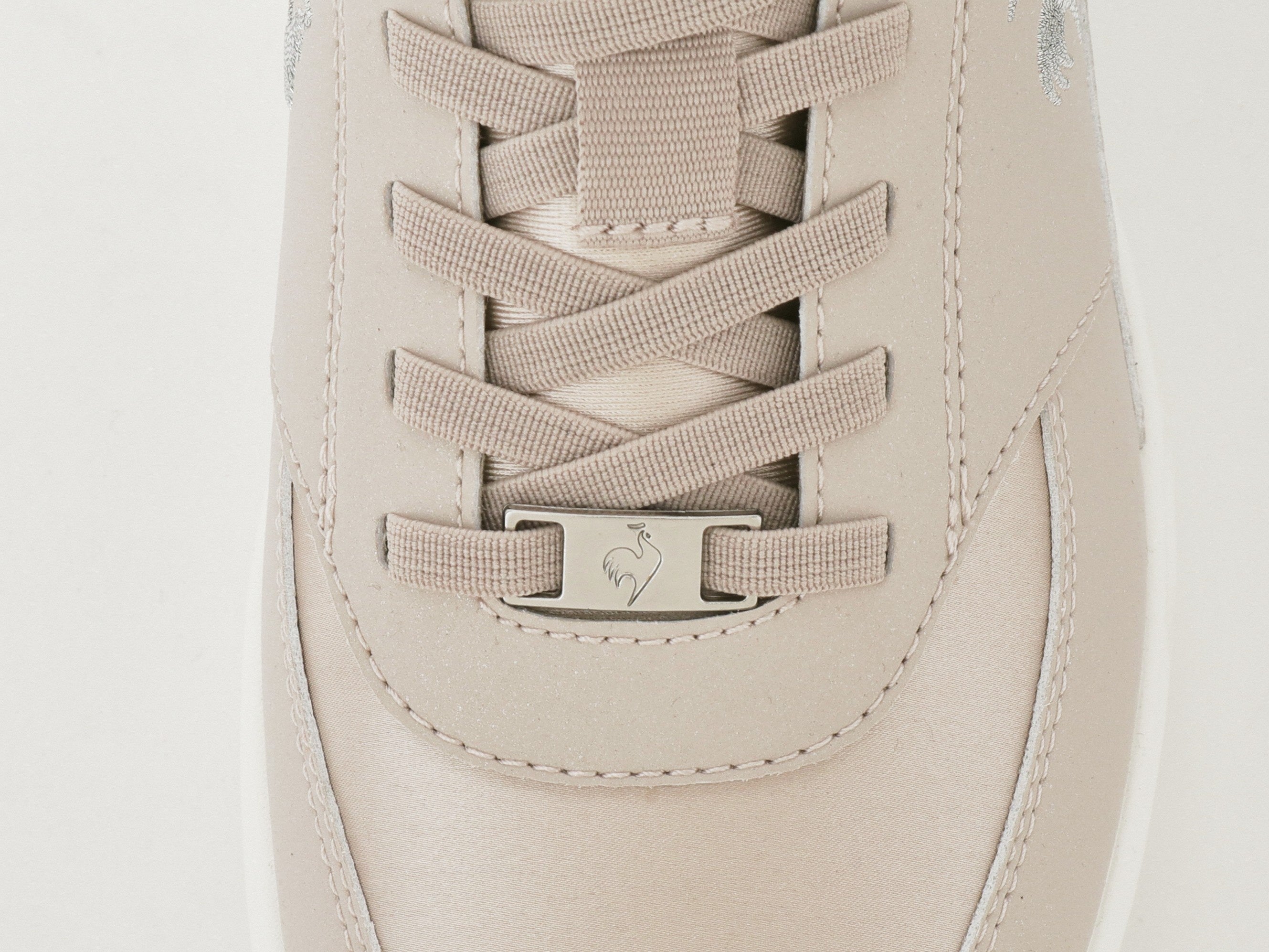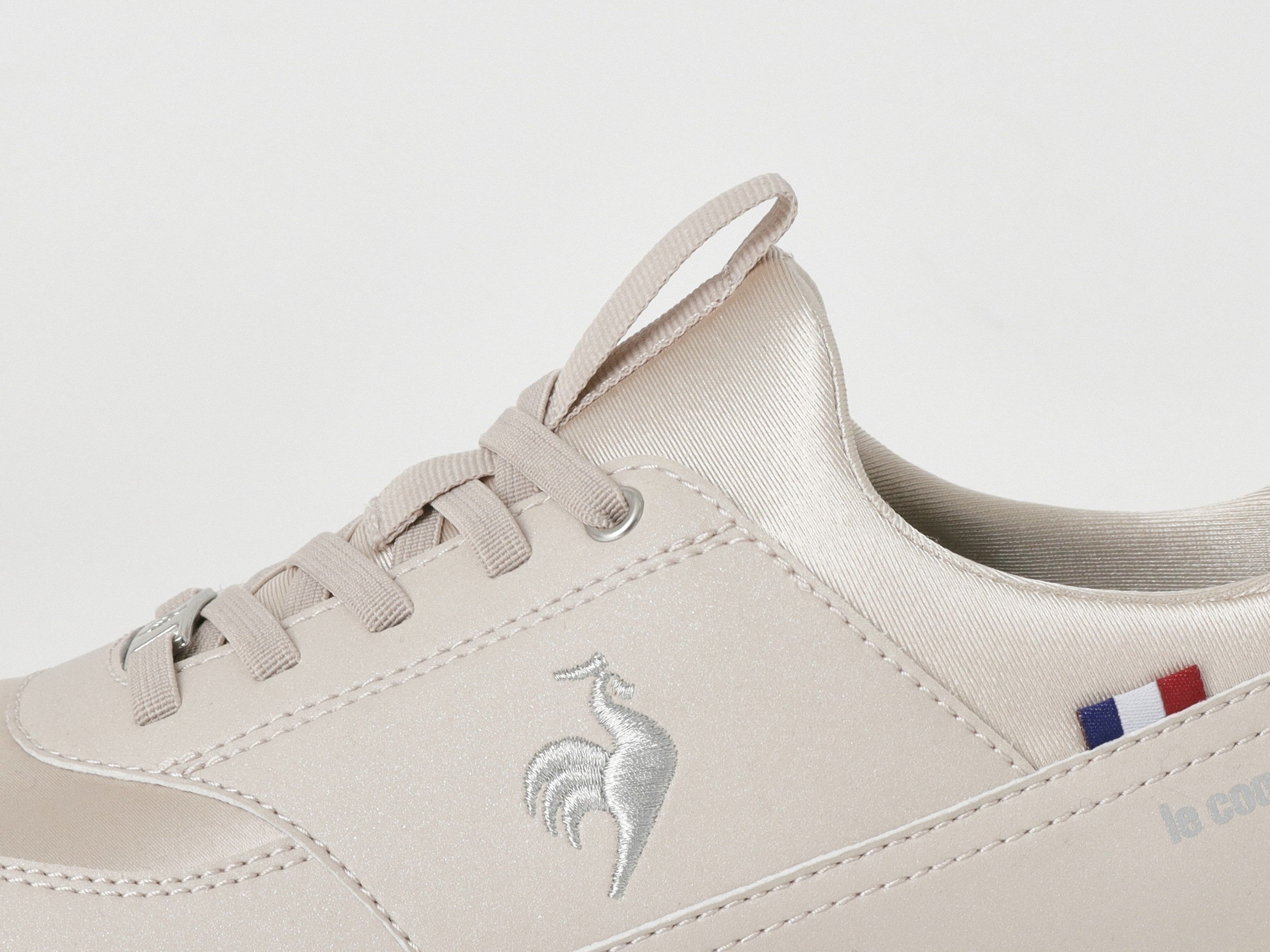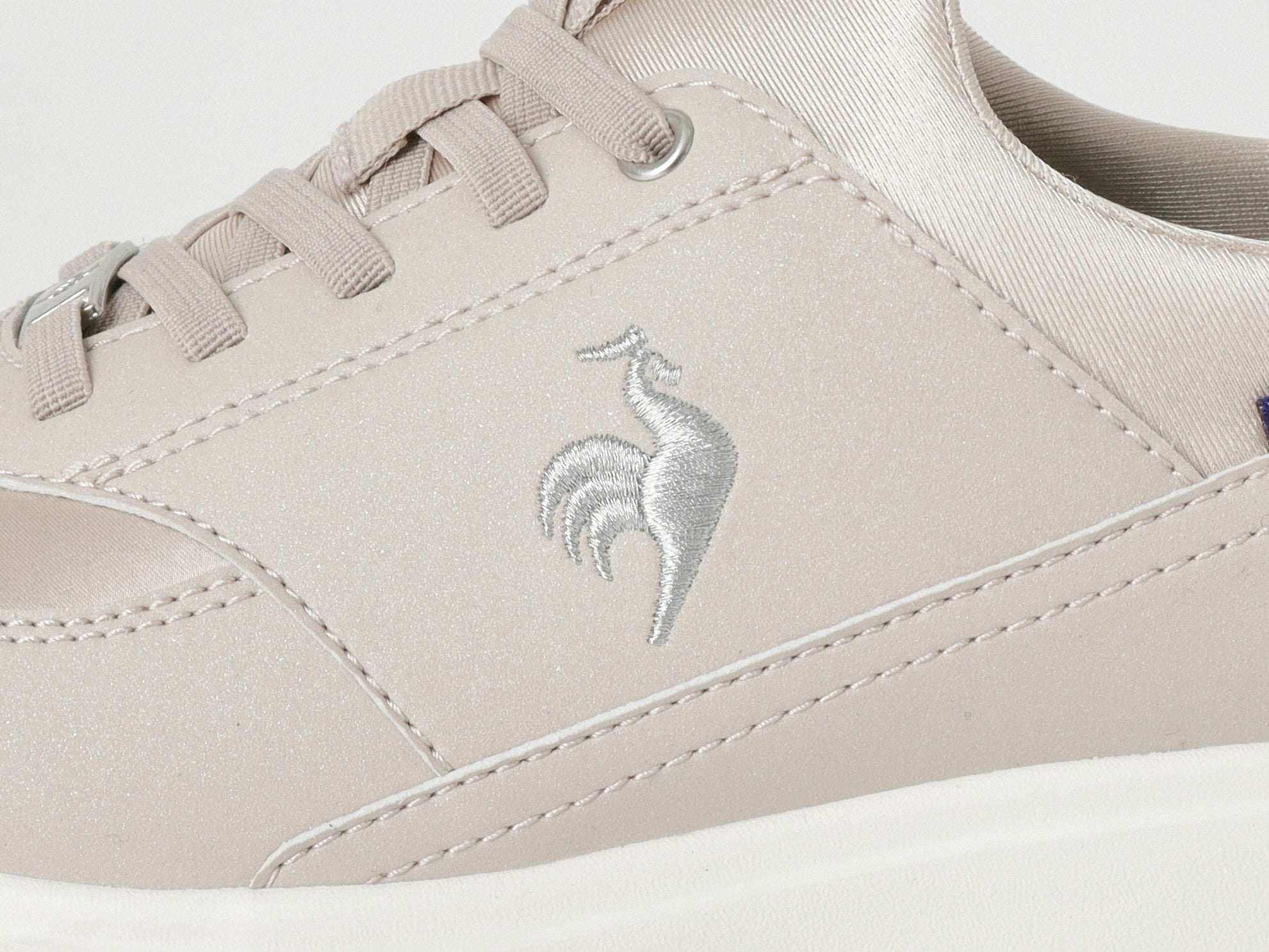 サテン調の光沢素材をミックスし、ブランドロゴにはシルバーラメの刺繍を施すなど、細部まで上品さにこだわったグローブらしいデザインです。厚底仕様のソールは、クッション性と軽量性を両立。スタイルアップを叶えつつ、軽やかな履き心地の一足です。