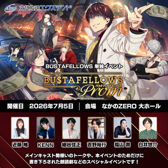 2026年7月5日(日)には、メインキャストが全員登壇する初のイベント「BUSTAFELLOWS PROM(バスタフェロウズ・プロム)」の開催が決定、キャストトークや書き下ろしの朗読劇などを予定しています。チケット情報など詳細は近日公開予定です。