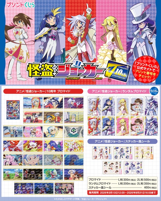 株式会社 小学館ミュージック&デジタルエンタテイメントが提供するプリントサービス「プリントくじら」にて、2026年3月13日よりアニメ『怪盗ジョーカー』のコンテンツプリントを販売開始いたします。