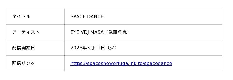 一般社団法人WITH ALSは、2026年6月20日(土)にEXシアター六本木にて開催される難病ALS啓発音楽フェス「MOVE FES. 2026」に向けて、EYE VDJ MASA(武藤将胤)による新曲『SPACE DANCE』を本日3月11日(火)より各音楽配信サービスにてリリースいたします。