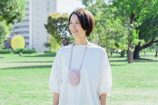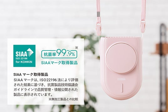 「ハンズフリー3WAYファン」は、ネックストラップで首に掛ける、