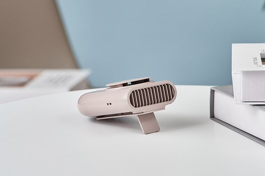 クリップでパンツやスカートに挟む、背面のスタンドを使用して卓上ファンとして使うなど、