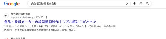 食品 縦型動画 制作会社 の検索で株式会社無色透明のシズル感LaboがSEO1位