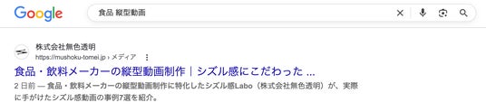 食品 縦型動画の検索で株式会社無色透明のシズル感LaboがSEO1位