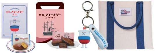 内容:横濱ハーバーミニダブルマロン5個入/黒船ハーバーしょこらいちご5個入/横濱ハーバー記念日トートバッグ/ハーバーくん立体ラバーキーホルダー すべて1個ずつ