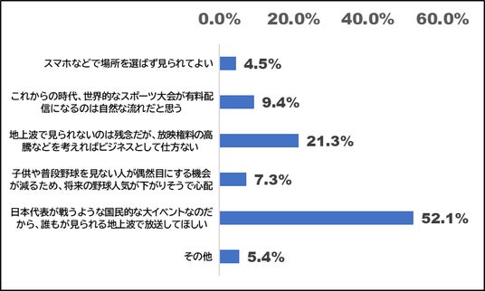 「Netflixで全試合観られるのは利便性が高いが、野球界の未来を考えると地上波の露出は不可欠だと思う。」(20代・男性)