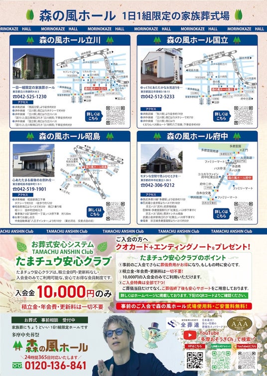 同社が運営するYouTubeチャンネル「多摩おそうぎch」では、1級葬祭ディレクターが週2回、葬儀の不安を解消する情報を発信。チャンネル登録者は地域を中心に急増中。今回のイベントもチャンネルと連動し、「知って得する終活情報」をオンライン・オフライン両面から届ける。