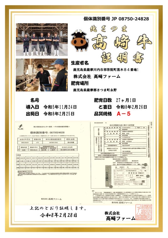 出荷元である株式会社高崎ファーム様は、これまでに数々の受賞歴を持つ鹿児島県内屈指の生産牧場です。