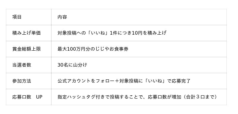Instagram「いいね」で最大100万円分じじやお食事券山分けキャンペーン