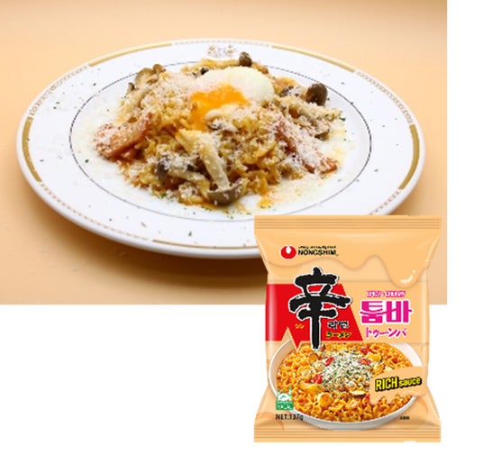 さらにクリーミーにアレンジ!トッピングに温泉たまごと、豊かなコクと香りのパルミジャーノ・レッジャーノチーズを使用し、本格パスタさながらの仕上がりに。濃厚ソースがもちもちの麺としっかり絡み合い、口いっぱいに“SPICY&CREAMY”な味わいが広がります。
