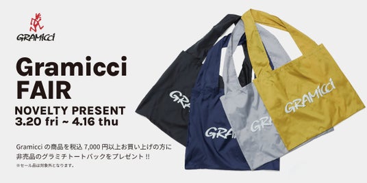 ■3月20日(金)より、限定トートバッグがもらえる「Gramicci FAIR」を実施