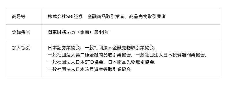SBI証券で取り扱っている商品等へのご投資には、商品毎に所定の手数料や必要経費等をご負担いただく場合があります。また、各商品等は価格の変動等により損失が生じるおそれがあります(信用取引、先物・オプション取引、商品先物取引、外国為替保証金取引、取引所CFD(くりっく株365)、店頭CFD取引(SBI CFD)では差し入れた保証金・証拠金(元本)を上回る損失が生じるおそれがあります)。各商品等への投資に際してご負担いただく手数料等及びリスクは商品毎に異なりますので、詳細につきましては、SBI証券WEBサイトの当該商品等のページ、金融商品取引法等に係る表示又は契約締結前交付書面等をご確認ください。